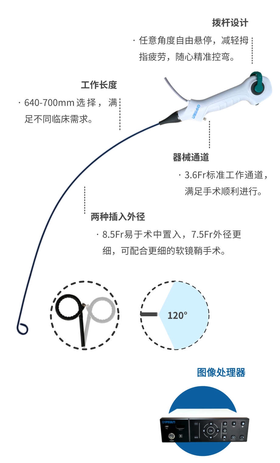 上下275°雙向彎曲,無盲區(qū)觀察;
